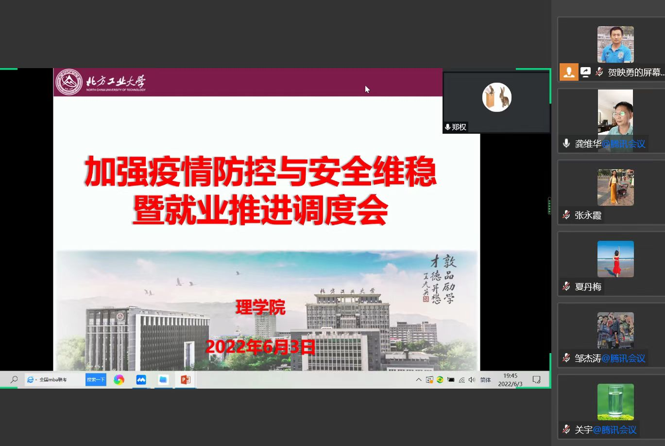6月3日晚,澳门十大信誉好的网站召开加强疫情防控与安全稳定暨就业推进调度会,学院班子成员、系主任、责任教授、系支部书记、毕业班导师、办公室全体老师和辅导员参加了会议。学院党委龚维华书记主持调度会。
