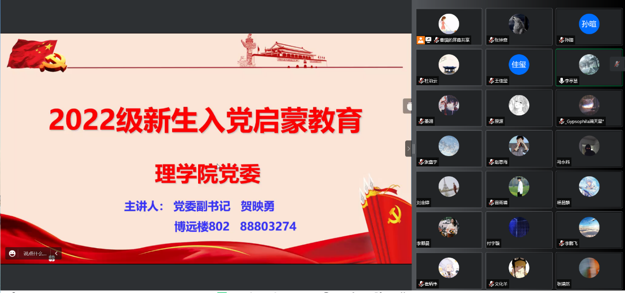 9月28日,澳门十大信誉好的网站党委通过线上腾讯会议方式,召开2022级新生入党启蒙教育大会。学院党委副书记、党支部书记代表、党务秘书、新生辅导员和全体2022级新生参加了会议。