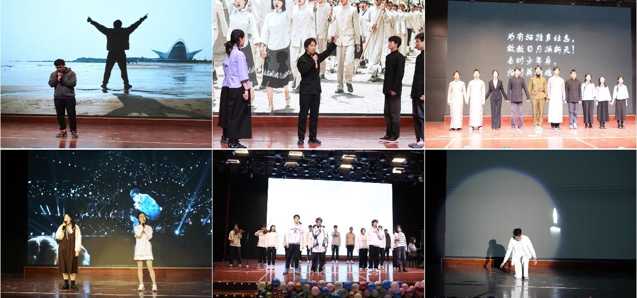 文艺汇演环节中,同学们尽显才艺。张珺涵同学用深沉浑厚的歌声演唱歌曲《玫瑰》,带领我们回忆青春;统23-1班及小导的话剧《新青年觉醒抗争》将同学们的思绪带回到那个交织着汗水血水与泪水的觉醒年代,激发同学们满腔的爱国热情;范佳琪同学和许澜馨同学同台演唱歌曲《裹着心的光》,婉转动听的歌声,让同学们的心中充满力量;统23-2班同学们带来合唱《有何不可》,刘欣邦同学的独舞《默》,让我们静心倾听内心的声音。
