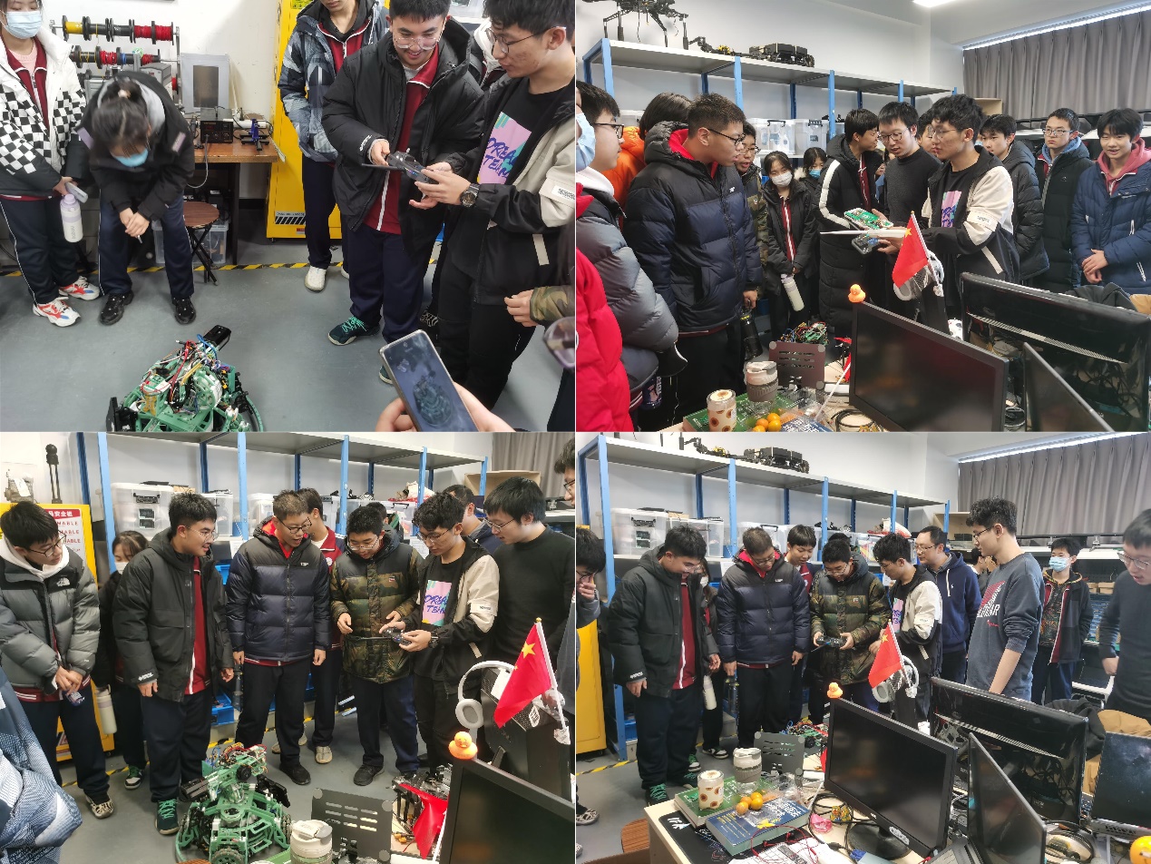 在电气与控制工程学院机器人实验室,毕松老师和他的学生为来访师生展示十大信誉官网在机器人大赛中的获奖作品,同学们兴趣高涨,驻足围观,尝试动手实际操作,沉浸式体验了科技的魅力。