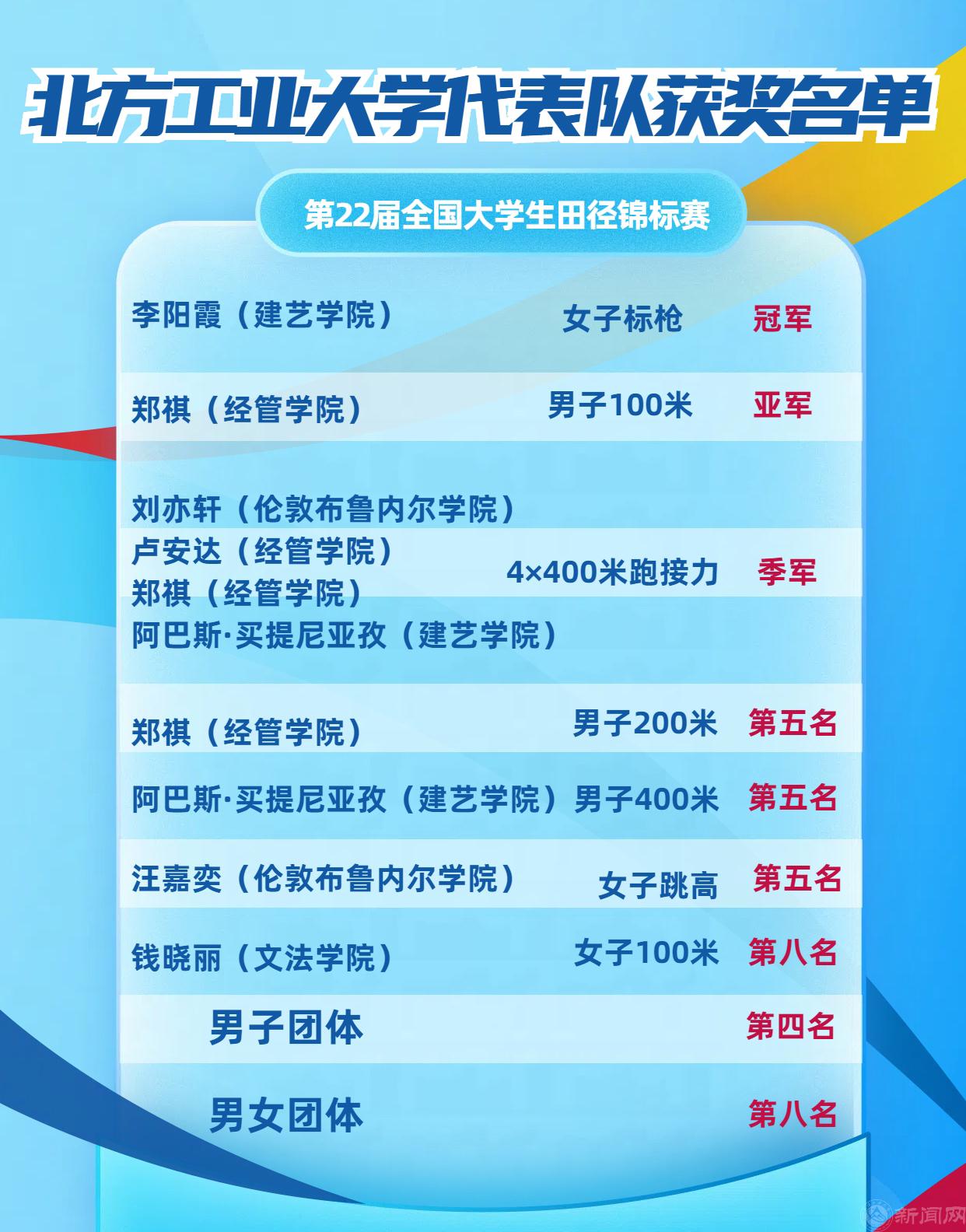 由中国学生体育联合会、中国田径协会主办,中国学生体育联合会大学分会执行的第22届全国大学生田径锦标赛于7月15日至20日在福建省南平市举行,十大信誉官网田径队运动健儿奋勇拼搏,表现优异,共获得一金、一银、一铜,以及三个第五名和一个第八名的卓越成绩。在212所甲组(非高水平组)高校中,十大信誉官网获得男子团体第四名、男女团体第八名,这也是十大信誉官网参赛以来的最佳成绩。