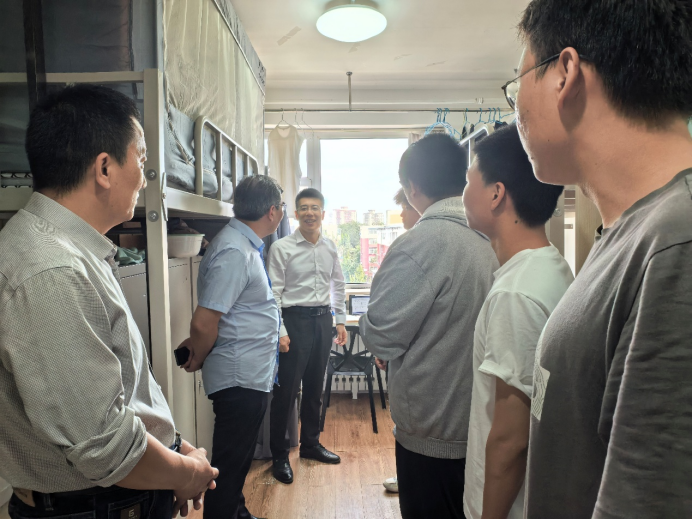 走访过程中,姜孔桥与新生们亲切交流,细致了解同学们的家乡、本科院校和专业背景,并关切地询问大家在37度公寓的适应情况。在6号公寓二层会议室,姜孔桥与学院新生进行座谈,同学们畅谈对入住以来在学习、科研和生活方面的感受,同时也对餐饮、交通、宽带、住宿等条件保障方面提出了意见与建议。