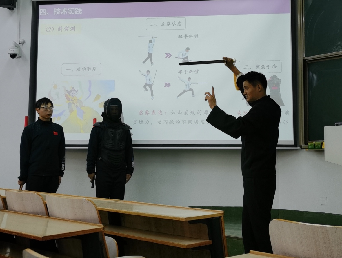 韩继祥老师来自体育系,他运用“从美学到意境”导入教学,“象形取意”、动静结合,将中华传统文化有机融入到中华武术的教学中,产生了良好的教学效果。