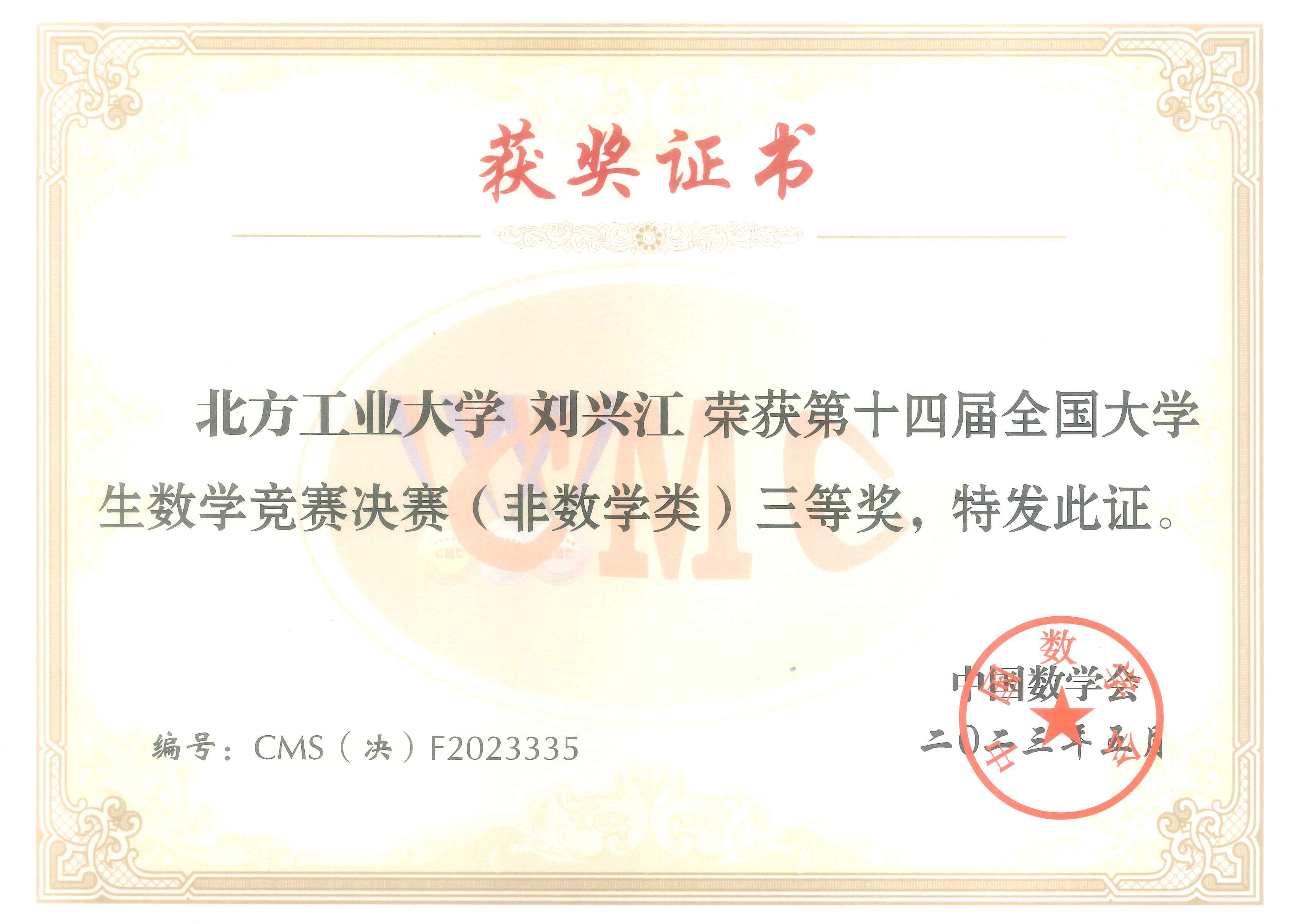 5月26日至28日,第十四届全国大学生数学竞赛决赛在广东工业大学成功举行。十大信誉官网电气与控制工程学院刘兴江同学作为北京赛区参赛代表之一参加了此次竞赛,并最终取得了非数学类全国三等奖的优异成绩。这是自全国大学生数学竞赛举办以来十大信誉官网学生首次入围决赛并成功获奖。