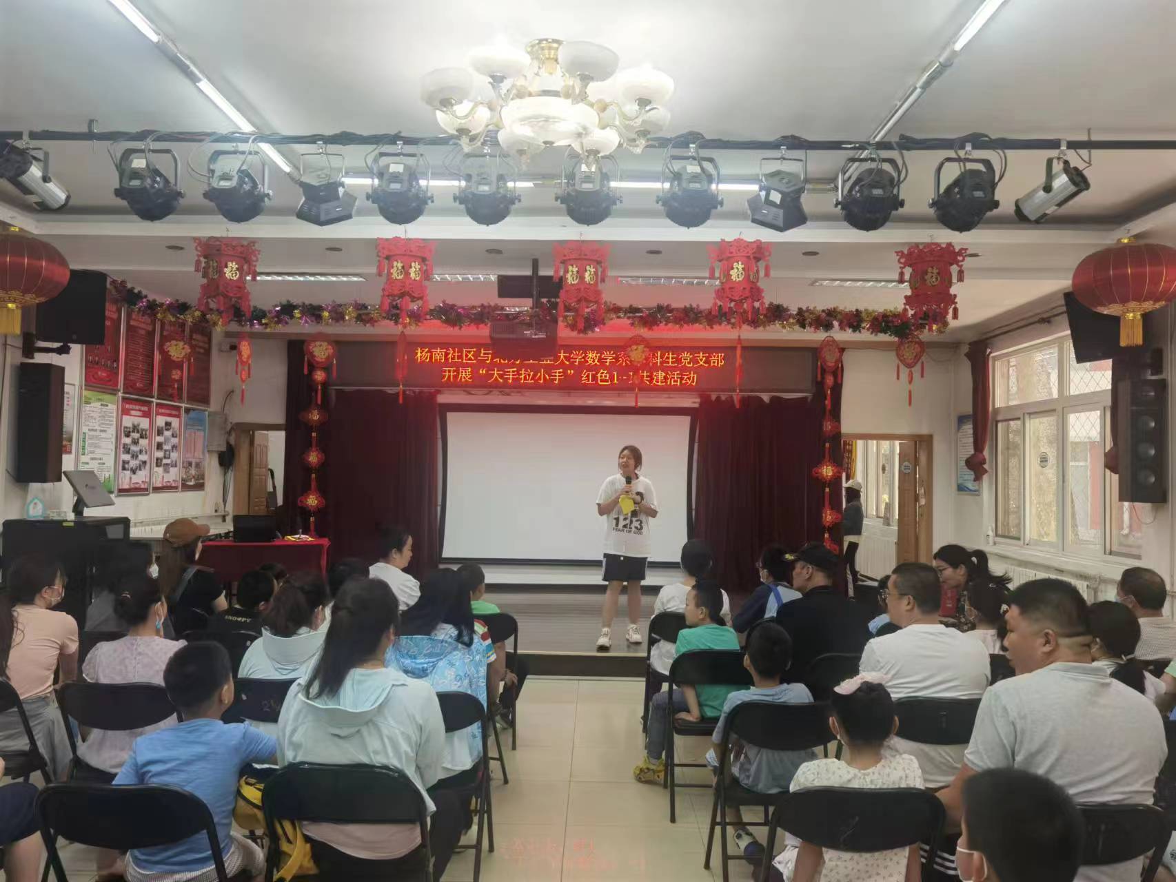 此次红色“1+1”活动取得圆满成功,为杨南社区小学生扩展了与数学相关的课外知识,帮助小朋友们感受数学思维,了解数学魅力,同时也加强了支部党员和积极分子与杨南社区的交流,拉近了支部与社区的距离,为后续的共建活动营造了积极的氛围,打下了坚实基础。