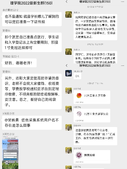 自八月上旬开始,为保证2022级迎新工作的顺利开展,学院新生辅导员、班导师与小辅导员们提前建立2022级新生QQ群、微信群,通过网络“牵线”,帮助22级的“萌新”们尽早融入大学。学院党委副书记、班导师、辅导员、小辅导员们在新生年级群、班级群里细致讲解疫情防控要求规定、入学报到流程、绿色通道办理、统计新生各类信息、解答新生各类问题。针对新生们关心的学习、工作、生活中的各类疑问,学院团委及时在学院团委公众号“理苑传媒”发布“澳门十大信誉好的网站专业概况”、“新生心中不解之谜的答案”、“校园卡、校园网的使用”、“北方工大的美食攻略” 四期推送,从而快速帮助新生了解大学、融入大学。